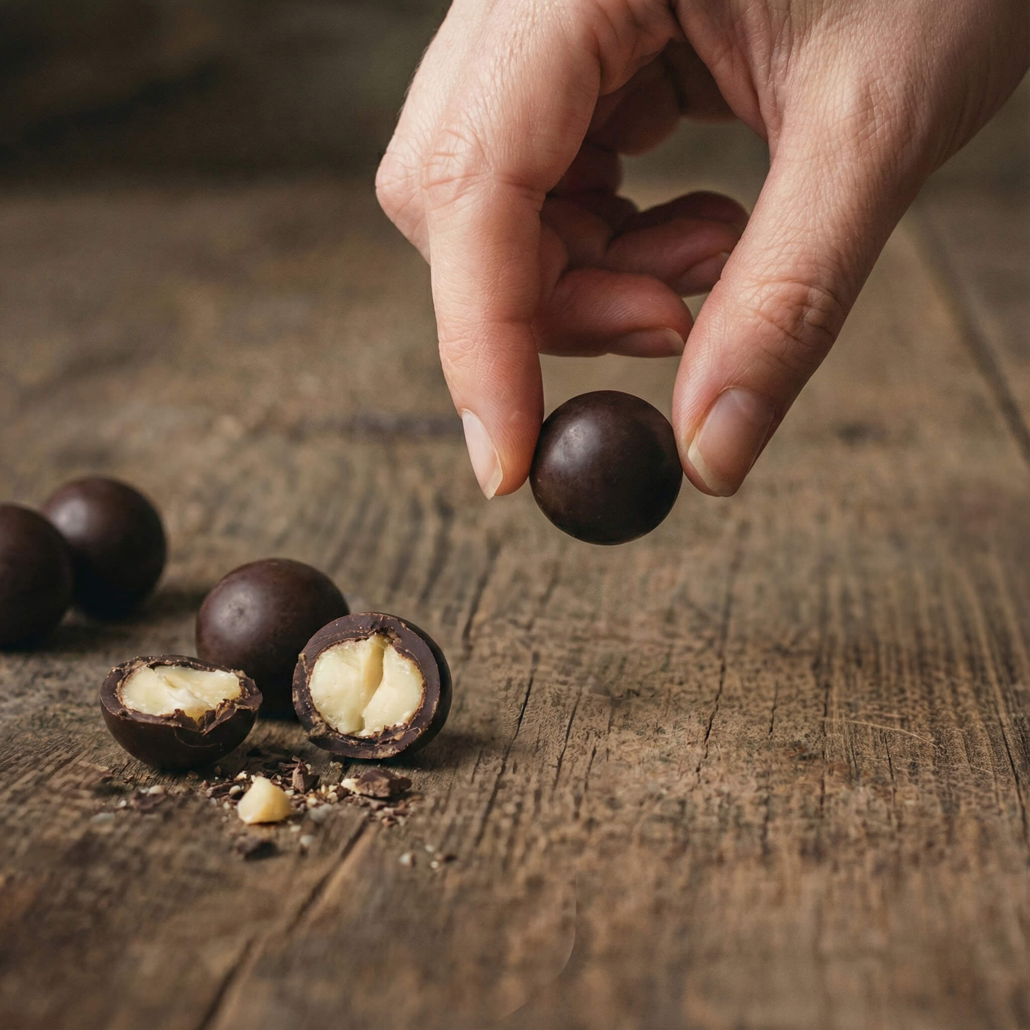 We pair these distinctive nuts with our single-origin Madagascar chocolate—known for its bright acidity and rich complexity. The chocolate’s fruity notes and natural tang elevate the nut’s earthy character, creating a balance that’s both sophisticated and utterly craveable. Two origins. Two premium ingredients. One unforgettable bite.